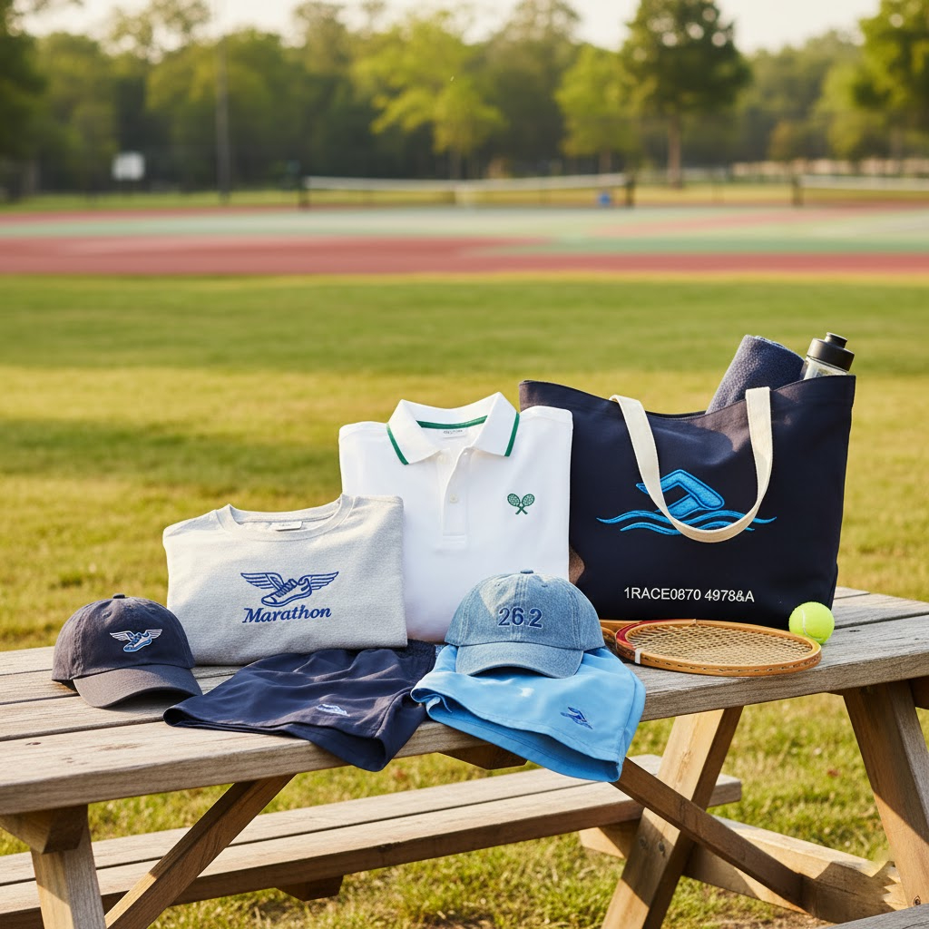 Discover premium embroidered apparel and accessories designed for swimmers, runners, and tennis enthusiasts