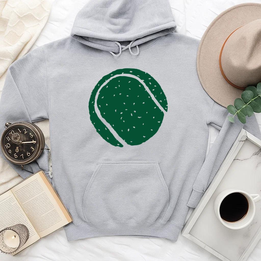 The Dark Green Tennis Ball Hoodie hoodie combines comfort warmth and style for a go anywhere piece that works in any season. Soft inside and durable outside it is perfect for layering or lounging