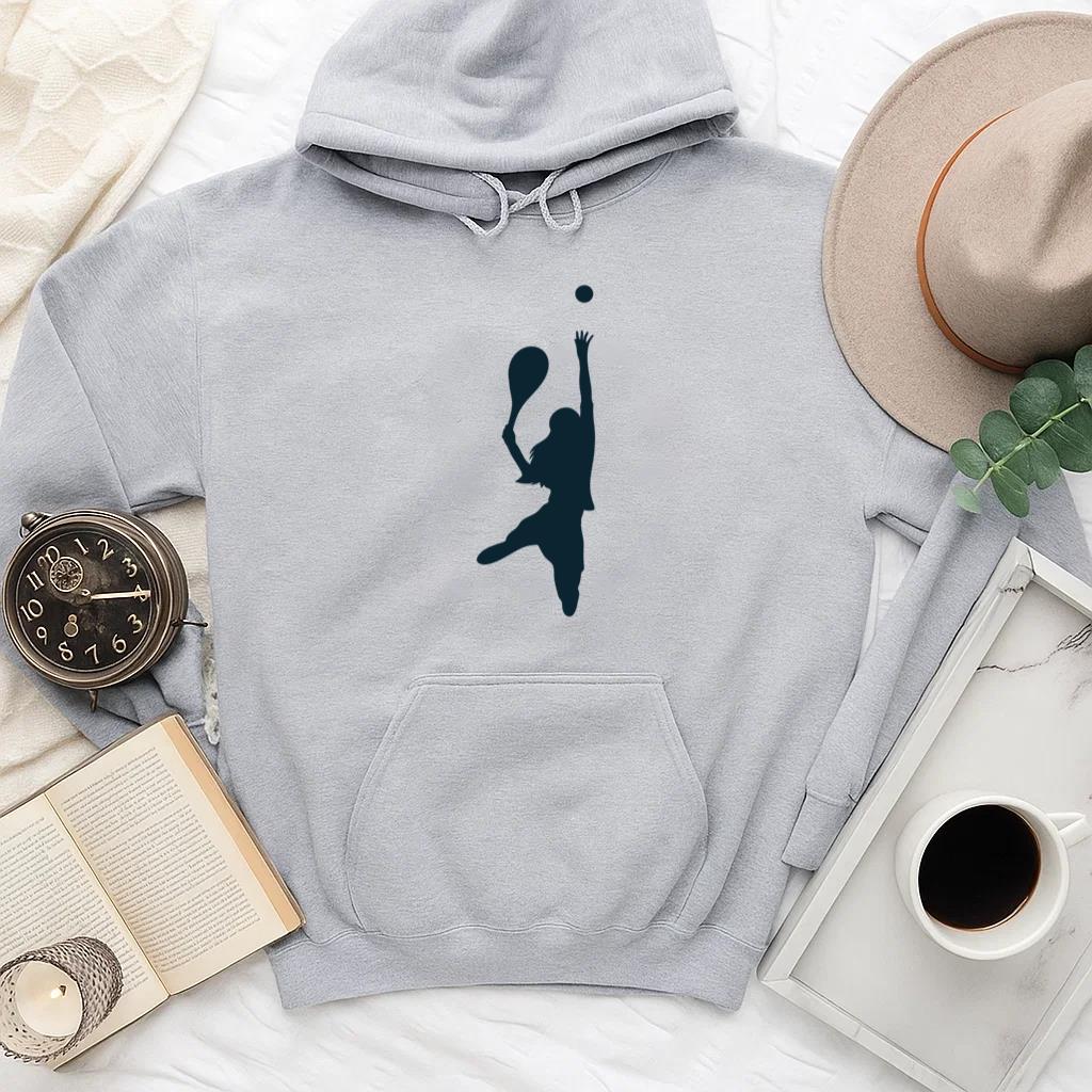 The Female Tennis Player Silhouette Tennis Player Hoodie hoodie combines comfort warmth and style for a go anywhere piece that works in any season. Soft inside and durable outside it is perfect for layering or lounging