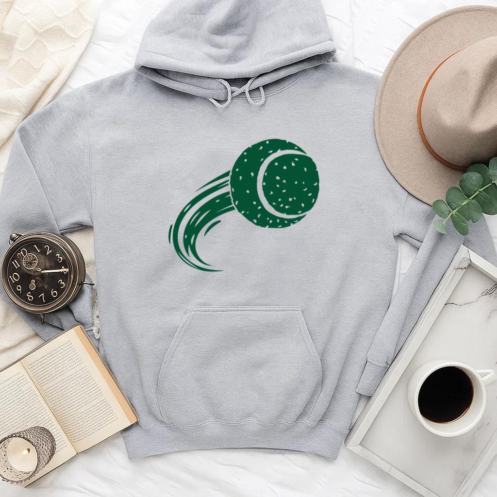 The Green Tennis Ball Flying In The Air Hoodie hoodie combines comfort warmth and style for a go anywhere piece that works in any season. Soft inside and durable outside it is perfect for layering or lounging