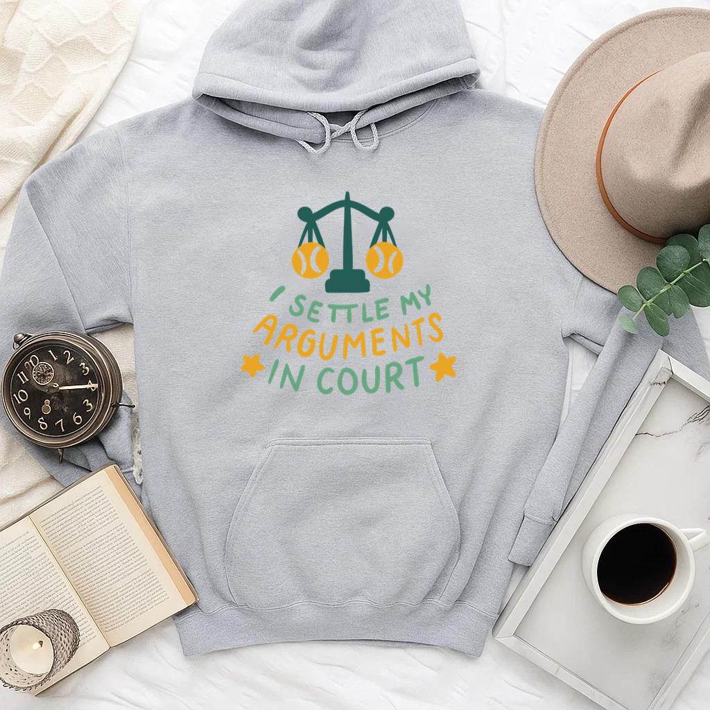 The I Settle My Arguments In Court Tennis Quote Hoodie hoodie combines comfort warmth and style for a go anywhere piece that works in any season. Soft inside and durable outside it is perfect for layering or lounging