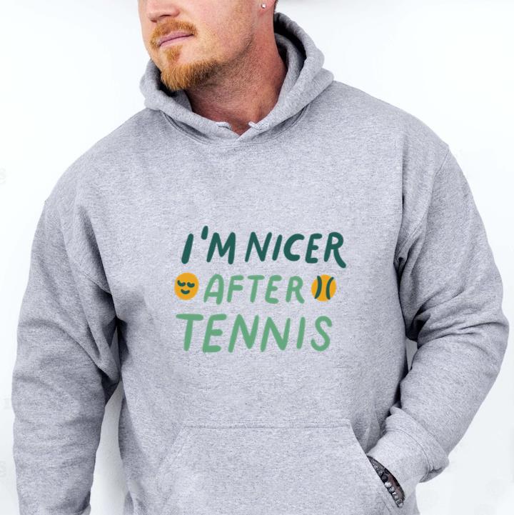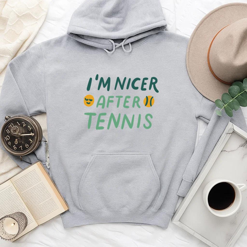 The Im Nicer After Tennis Hoodie hoodie combines comfort warmth and style for a go anywhere piece that works in any season. Soft inside and durable outside it is perfect for layering or lounging