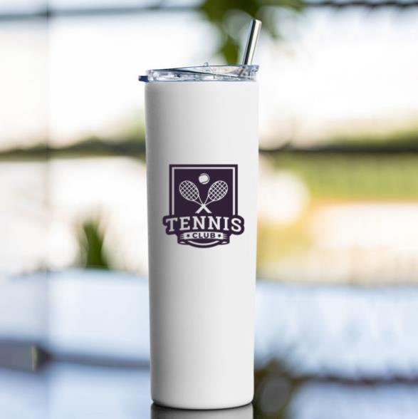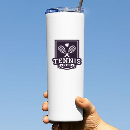 Product Title: Tennis Club Racket Ball Badge Sticker Skinny Tumbler 20oz Skinny Tumbler 20oz
