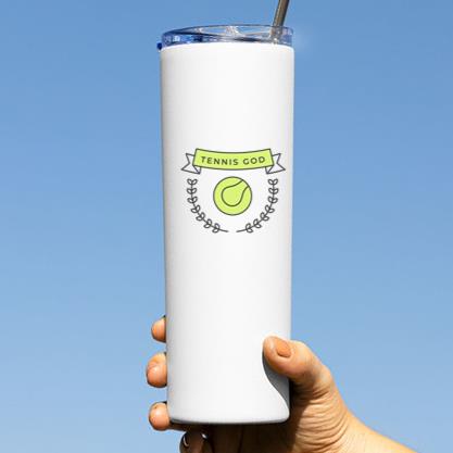 Product Title: Tennis God Ball Branch Colored Badge Sticker Skinny Tumbler 20oz Skinny Tumbler 20oz